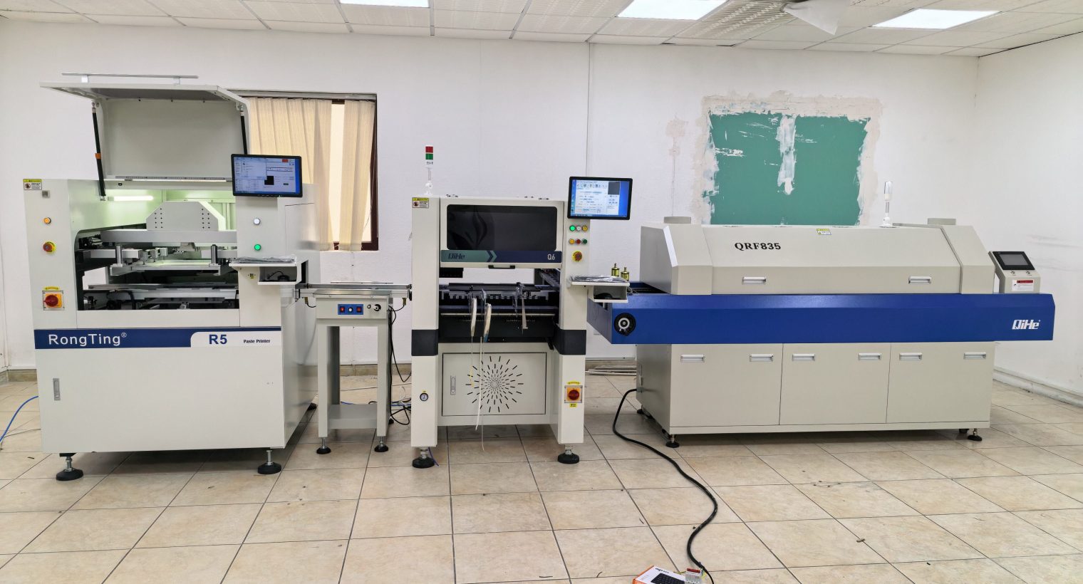 A client from Shantou purchased one of our production lines, which includes the fully automatic printer R5, the conveyor machine QJB100, and the pick-and-place machine Q6,reflow oven QRF835.